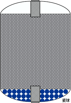 Low cost, high amount of ineffective packing, poor drainage at the bottom, large pressure drop during entry and exit, and ceramic balls increase thermal load.