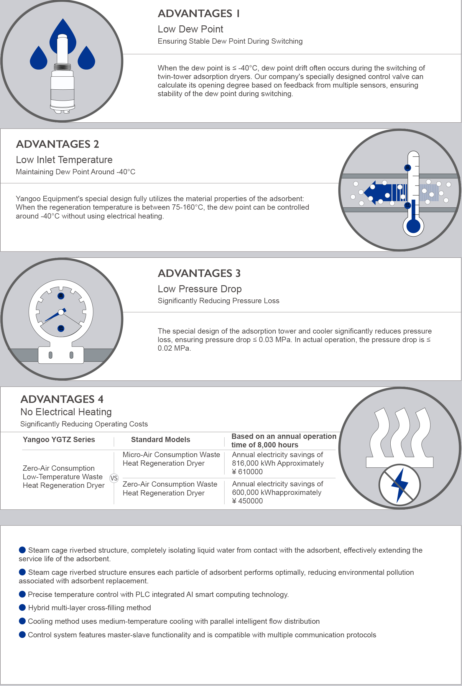 Our company holds multiple invention and utility model patents for the design and manufacture of waste heat dryers, draught heat dryers, variable frequency cold dryers, pre-coolers, purification machine design and manufacture, low-temperature refrigeration machine design and manufacture, self-control system selection and WINCC configuration, multi-tower PSA pressure swing adsorption dryers, multi-tower PSA hydrogen purification, and multi-tower PSA adsorption dryers for CO2 removal.